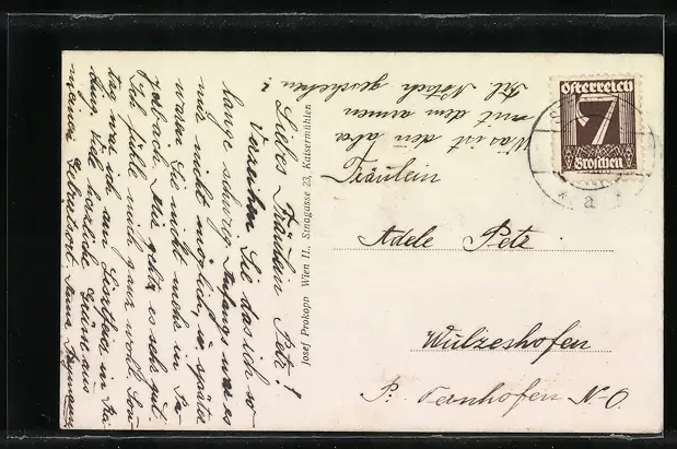 Personenbezogene Daten auf der Rückseite der Karte wurden durch blauen Textmarker unkenntlich gemacht. Die blauen Stellen sind auf die Vorderseite durchgeweicht und wirken sich negativ auf das Postkartenfoto aus