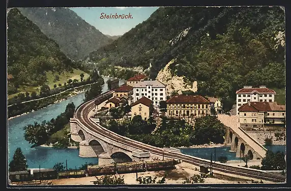 AK Steinbrück, Ortsansicht mit Bahnhof