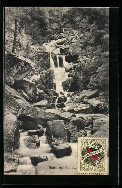 AK Steinere Renne mit Felsen, Wasserfall