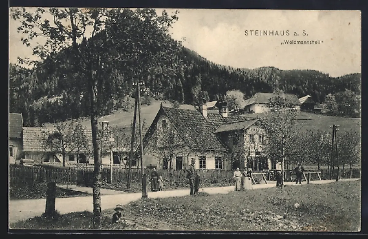 AK Steinhaus / Semmering, Gebäudeansicht mit Leuten