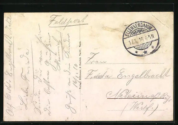alte Ansichtskarte, gelaufen 1916, Eckknick links oben, sonst guter Zustand