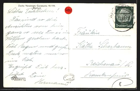 alte Ansichtskarte, gelaufen 1938, rückseitig Klebe- und Papierreste, guter Zustand