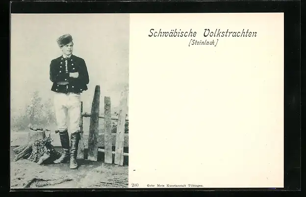 AK Steinlach, Mann in schwäbischer Tracht mit Kopfbedeckung