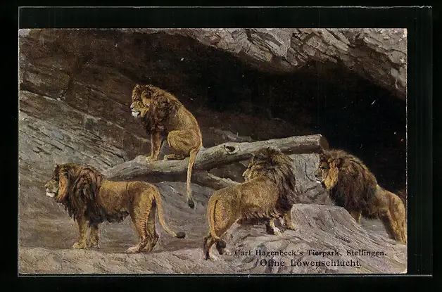 AK Stellingen, Löwen in der Löwenschlucht im Tierpark