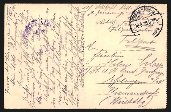 alte Ansichtskarte, gelaufen 1916, Eckknicke oben, guter Zustand
