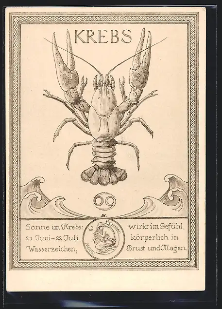 AK Sternzeichen Krebs, 21. Juni-22. Juli, Wasserzeichen