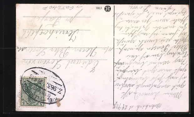 alte Ansichtskarte, gelaufen 1913, rückseitig Klebe- und Papierreste, Stempelspur, guter Zustand