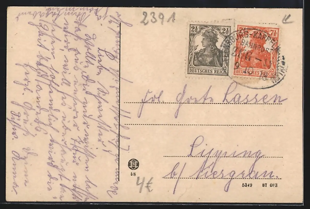 alte Ansichtskarte, gelaufen 1918, Bugspur mittig, guter Zustand