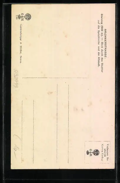 AK Sterzing, Blick durch das Stadttor auf die Spitalkirche
