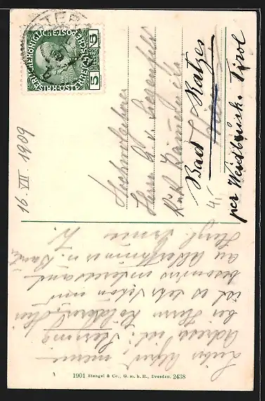 alte Ansichtskarte, gelaufen 1909, guter Zustand