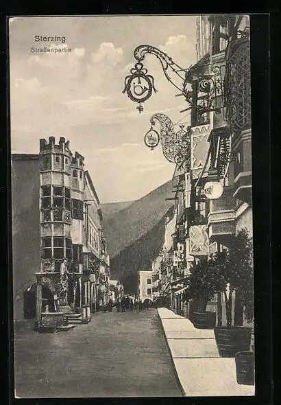 AK Sterzing, Strassenpartie mit Brunnen