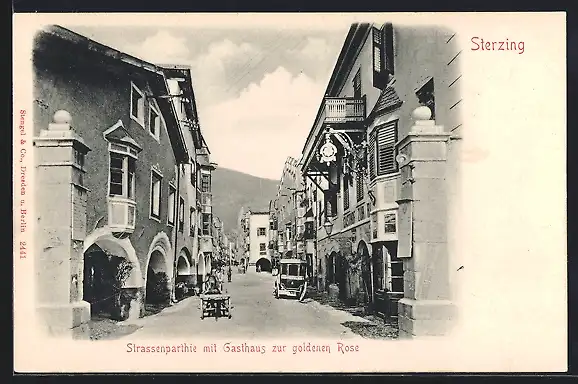 AK Sterzing, Strassenpartie mit Gasthaus zur goldenen Rose