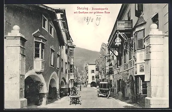 AK Sterzing, Strassenpartie mit Gasthaus zur goldenen Rose