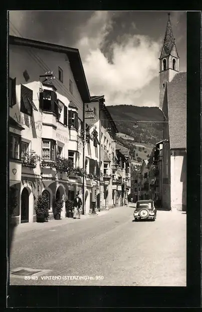 AK Sterzing, Strassenpartie mit Hotel und Auto
