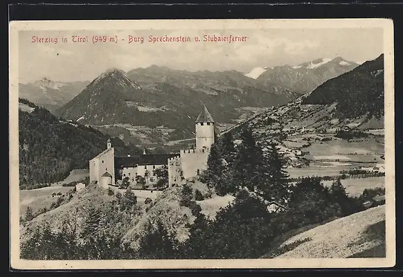 AK Sterzing in Tirol, Burg Sprechenstein und Stubaierferner