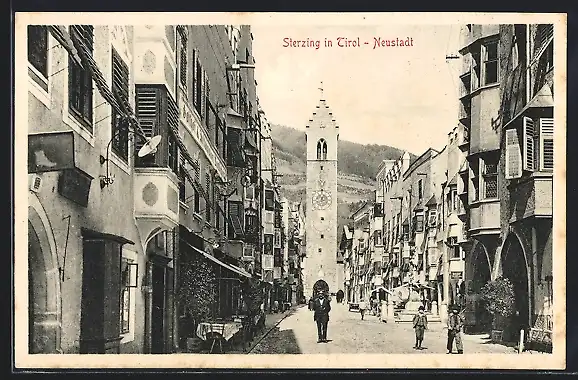AK Sterzing in Tirol, Strassenpartie mit Geschäften in der Neustadt