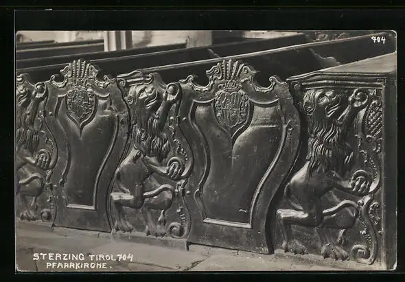 AK Sterzing, verzierte Bänke in der Pfarrkirche
