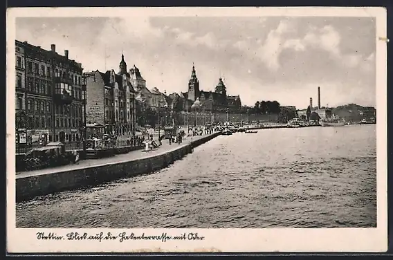 AK Stettin, Blick auf die Hakenterrassen mit Oder