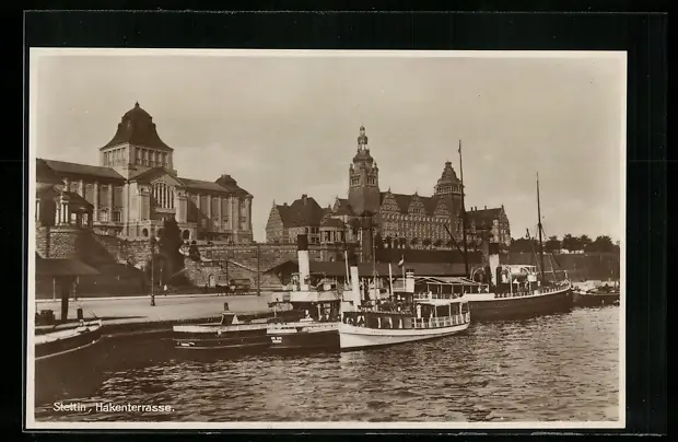 AK Stettin, Flusspartie an der Hakenterrasse