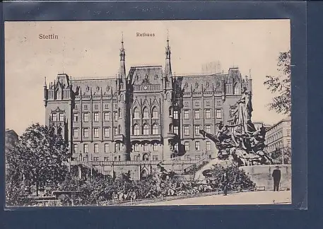 AK Stettin Rathaus, gelaufen von 1916