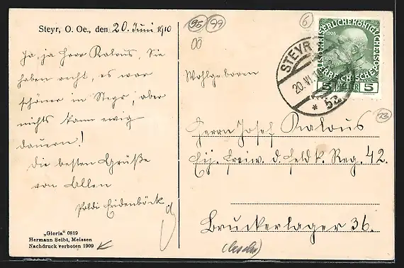alte Ansichtskarte, gelaufen 1910, guter Zustand