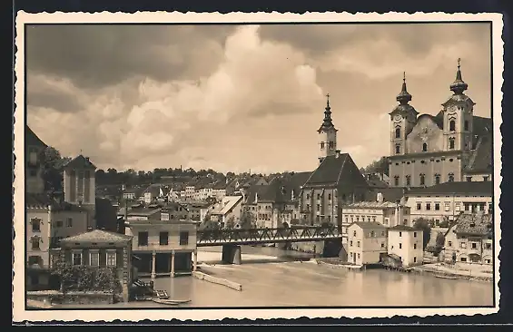 AK Steyr, Einmündung der Steyr in die Enns mit Brücke