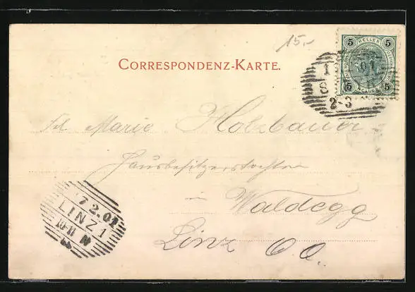 alte Ansichtskarte, gelaufen 1901, Stempelspur, guter Zustand