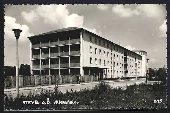 AK Steyr /O. Ö., Altersheim mit Strassenpartie