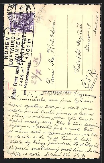 Personenbezogene Daten auf der Rückseite der Karte wurden durch blauen Textmarker unkenntlich gemacht. Die blauen Stellen sind auf die Vorderseite durchgeweicht und wirken sich negativ auf das Postkartenfoto aus