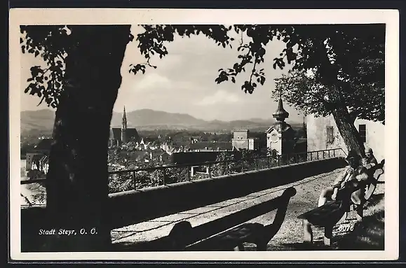 AK Steyr /O. Ö., Ortsansicht mit Kirche