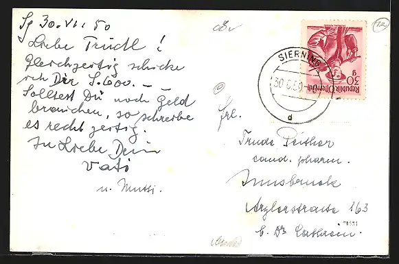 alte Ansichtskarte, gelaufen 1950, guter Zustand