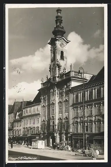 AK Steyr /O.-Ö., Rathaus mit Geschäften