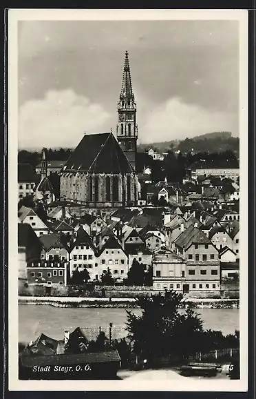 AK Steyr /O.-Ö., Teilansicht mit Kirche