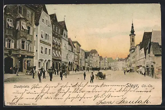AK Steyr /Ob.-Oe., Stadtplatz mit Gasthof