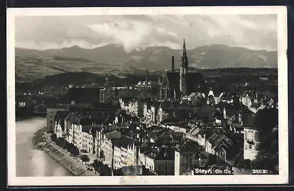 AK Steyr /Ob.-Oe., Teilansicht mit Kirche