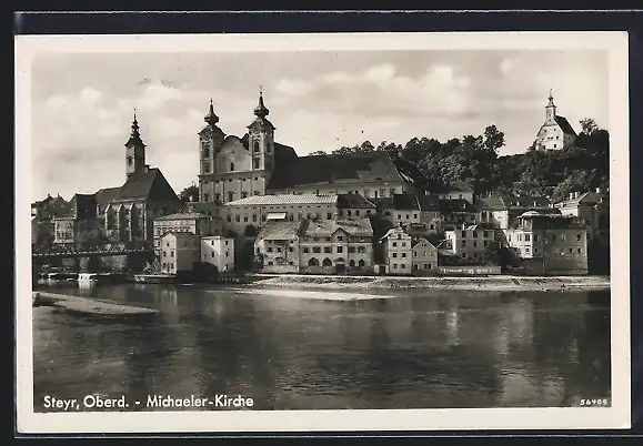 AK Steyr /Oberd., Michaeler-Kirche mit Flusspartie