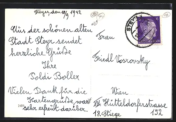 alte Ansichtskarte, gelaufen 1942, guter Zustand