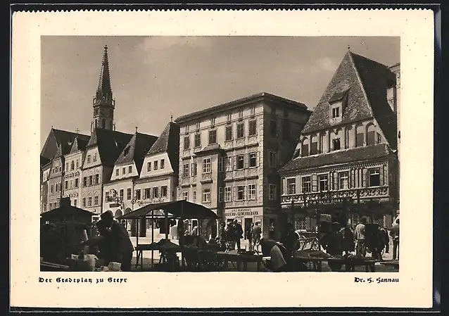 AK Steyr, Stadtplatz mit Bauern-Gewerbebank