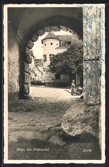 AK Steyr a. d. Enns, Grünmarkt durch Tor
