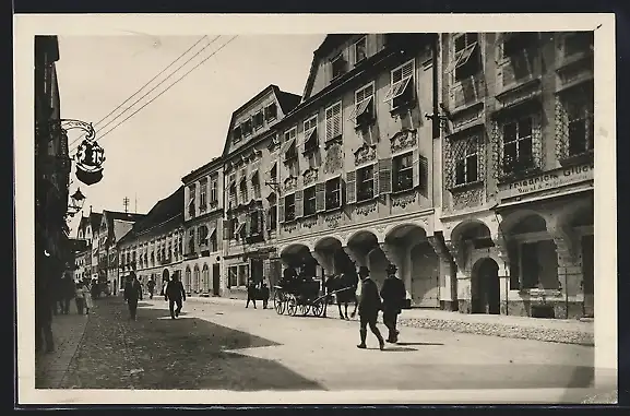 AK Steyr a. d. Enns, Passanten am Grünmarkt