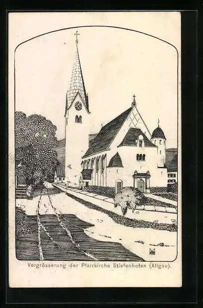 AK Stiefenhofen /Allgäu, Strassenpartie mit Pfarrkirche
