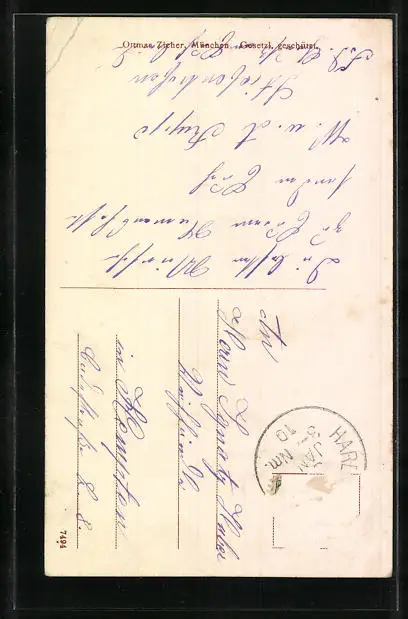 alte Ansichtskarte, gelaufen 1910, Briefmarke entfernt, rückseitig Oberflächenschaden, Eckknick unten li. u. oben re., guter Zustand
