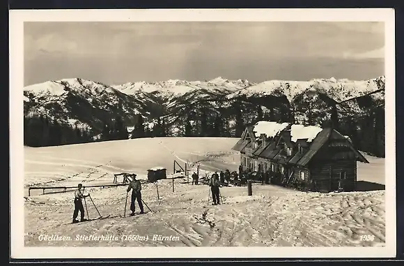 AK Stiefterhütte auf der Görlitzenalpe, Skifahrer