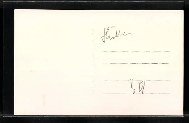 Personenbezogene Daten auf der Rückseite der Karte wurden durch blauen Textmarker unkenntlich gemacht. Die blauen Stellen sind auf die Vorderseite durchgeweicht und wirken sich negativ auf das Postkartenfoto aus