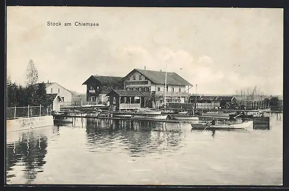 AK Stock a. Chiemsee, Ruderboote im Bootshafen