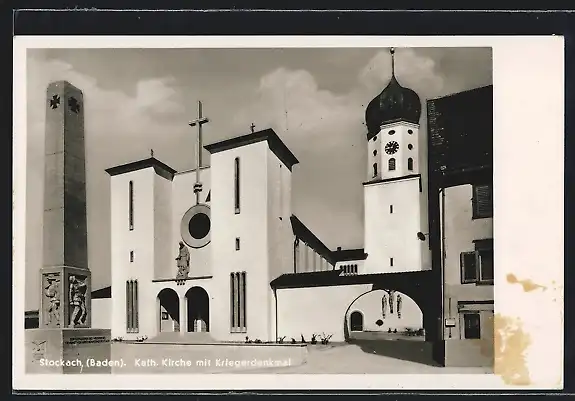 AK Stockach /Baden, Kath. Kirche mit Kriegerdenkmal