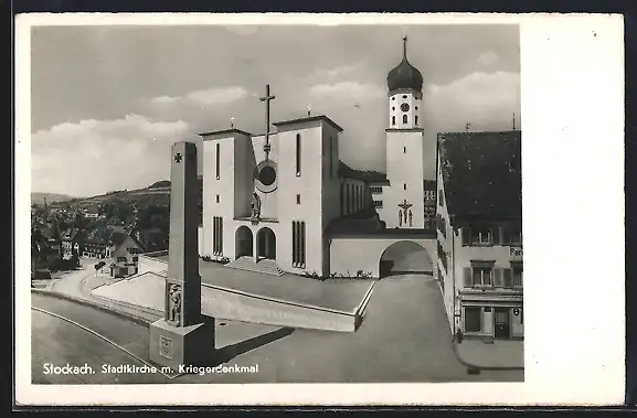 AK Stockach, Stadtkirche m. Kriegerdenkmal