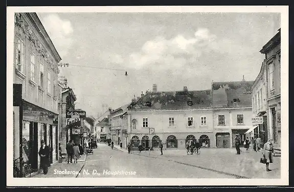 AK Stockerau /N.-D., Hauptstrasse mit Cafe Dienst