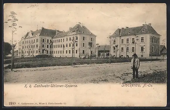 AK Stockerau /N.-Oe., K. k. Landwehr-Uhlanen-Kaserne
