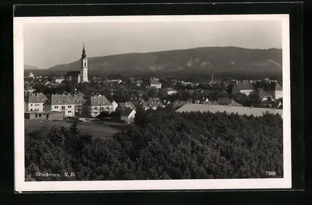 AK Stockerau, N.-Ö., Teilansicht vor Bergpanorama
